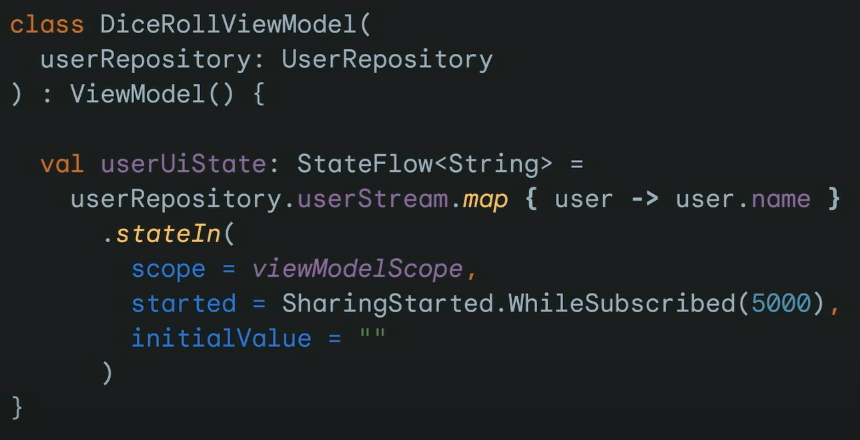 데이터는 데이터 스트림 형태로 다른 계층(Domain/Data)에서 제공됩니다. 이 데이터를 UI 상태에 맞게 조정하려면 관찰 가능한 데이터 홀더 유형으로 변환해야 합니다.